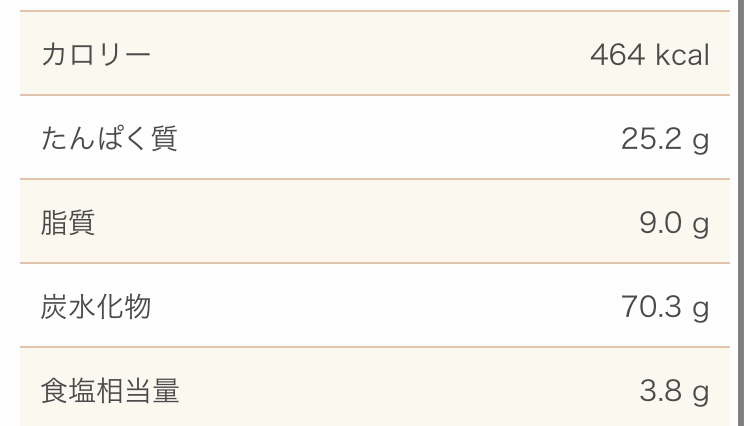 タンパク質は30g!そして脂質は10.2gと非常に優秀な栄養バランスになります。